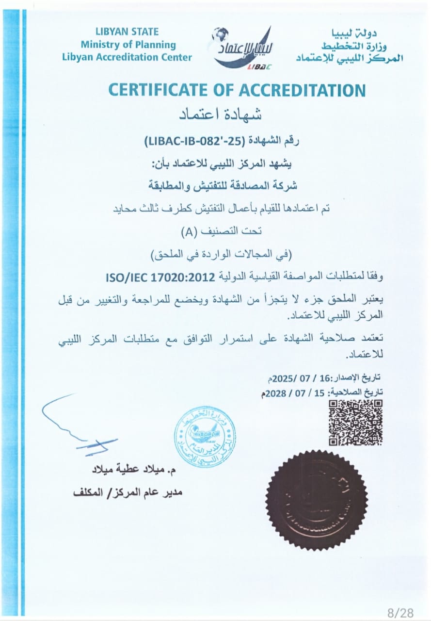 جهة تفتيش مستقلة معتمدة من المركز الليبي للإعتماد